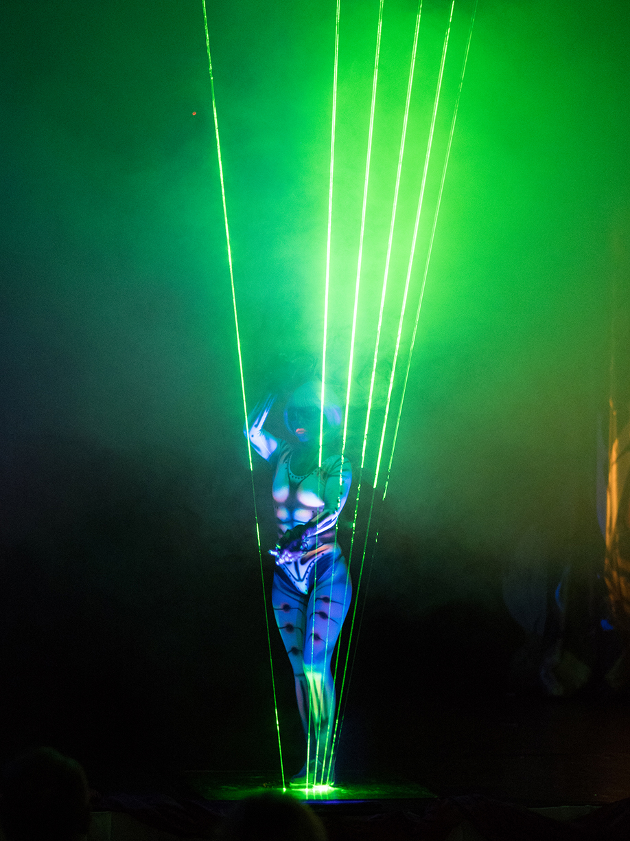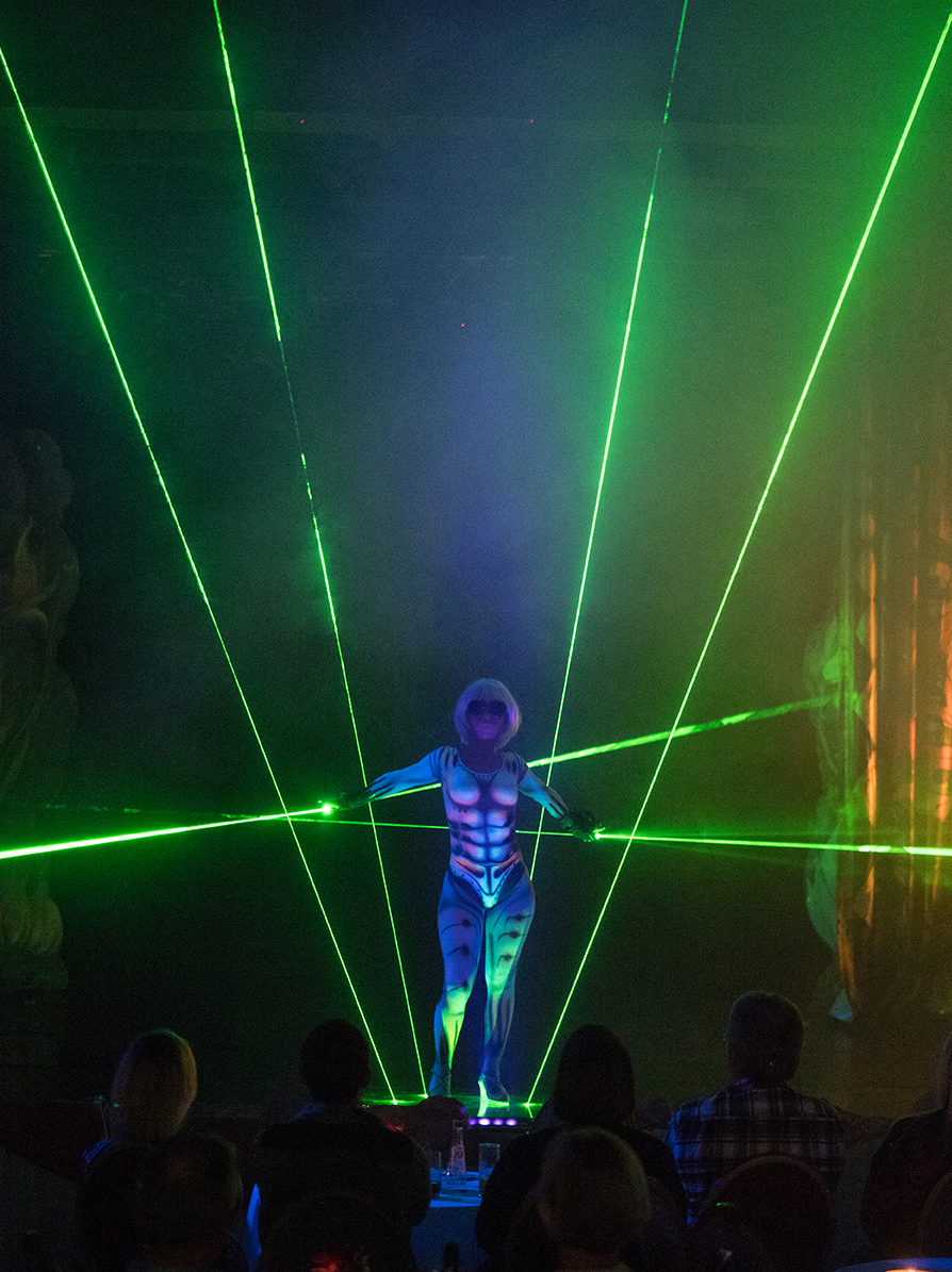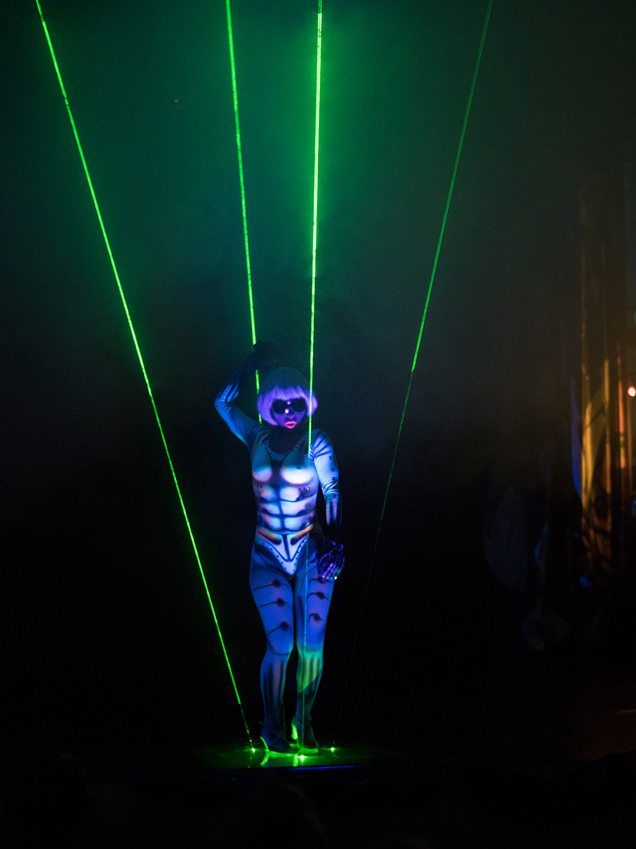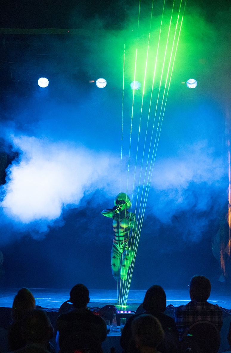 Ein speziel installiertes Lichtkonzept im Innenraum verwandelte den Pavillion in eine übergroße Lightbox.