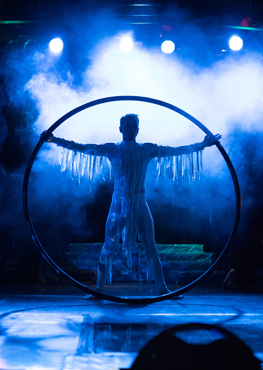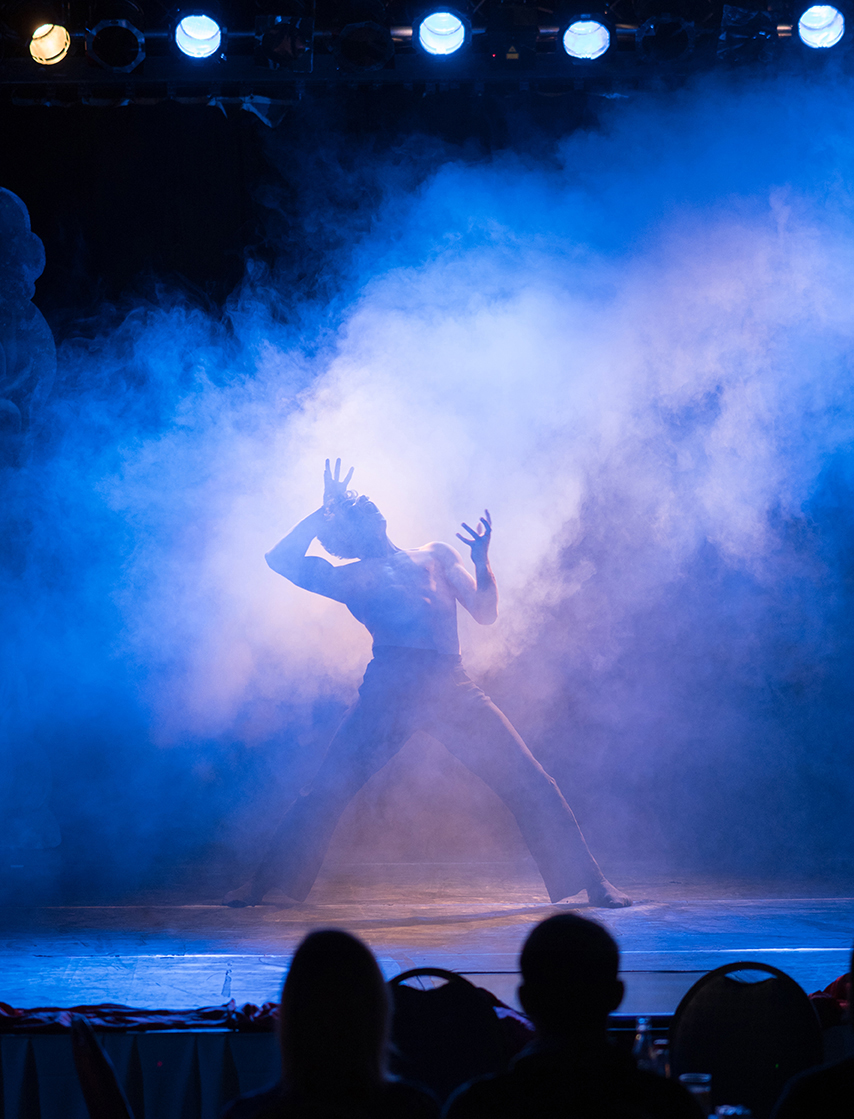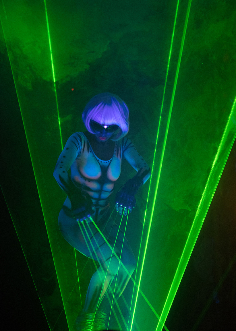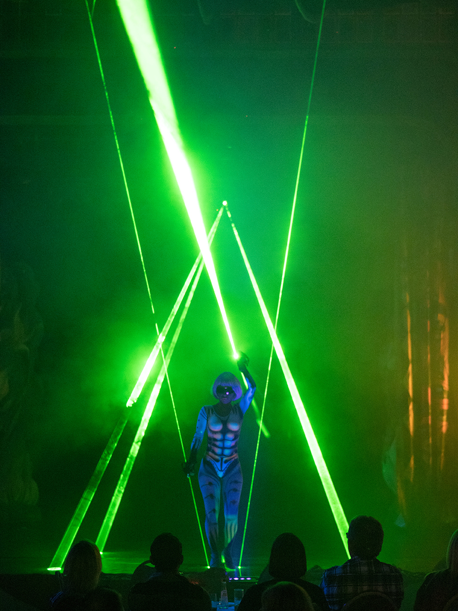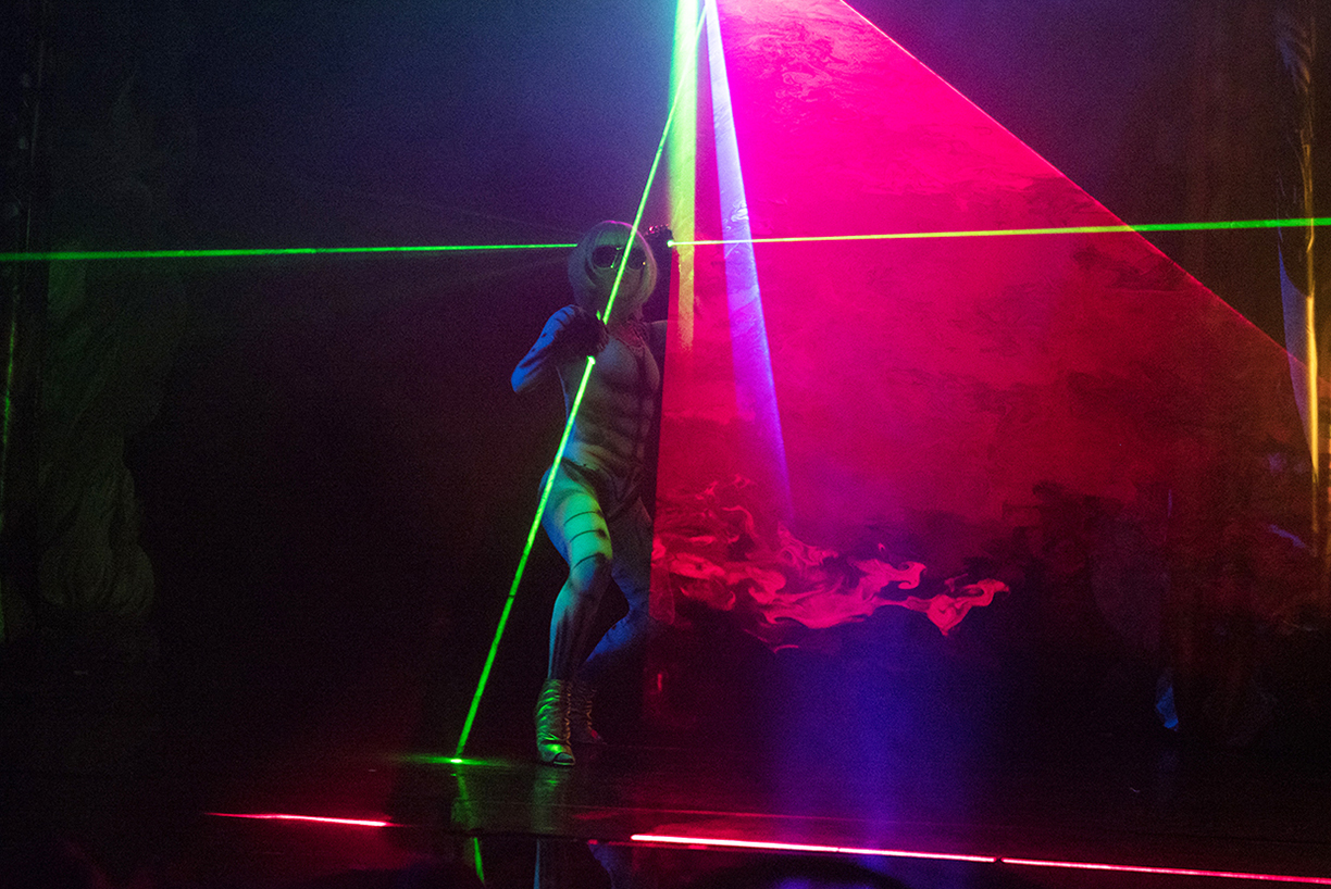 Ein speziel installiertes Lichtkonzept im Innenraum verwandelte den Pavillion in eine übergroße Lightbox.