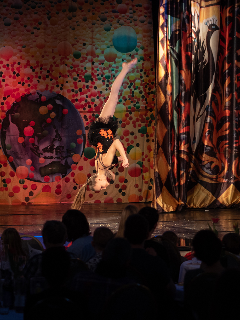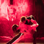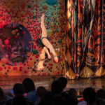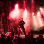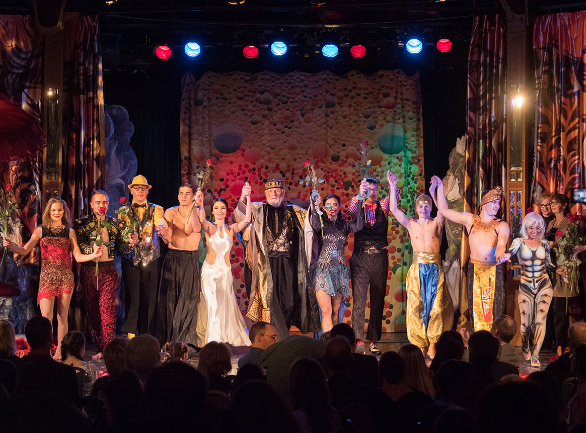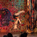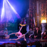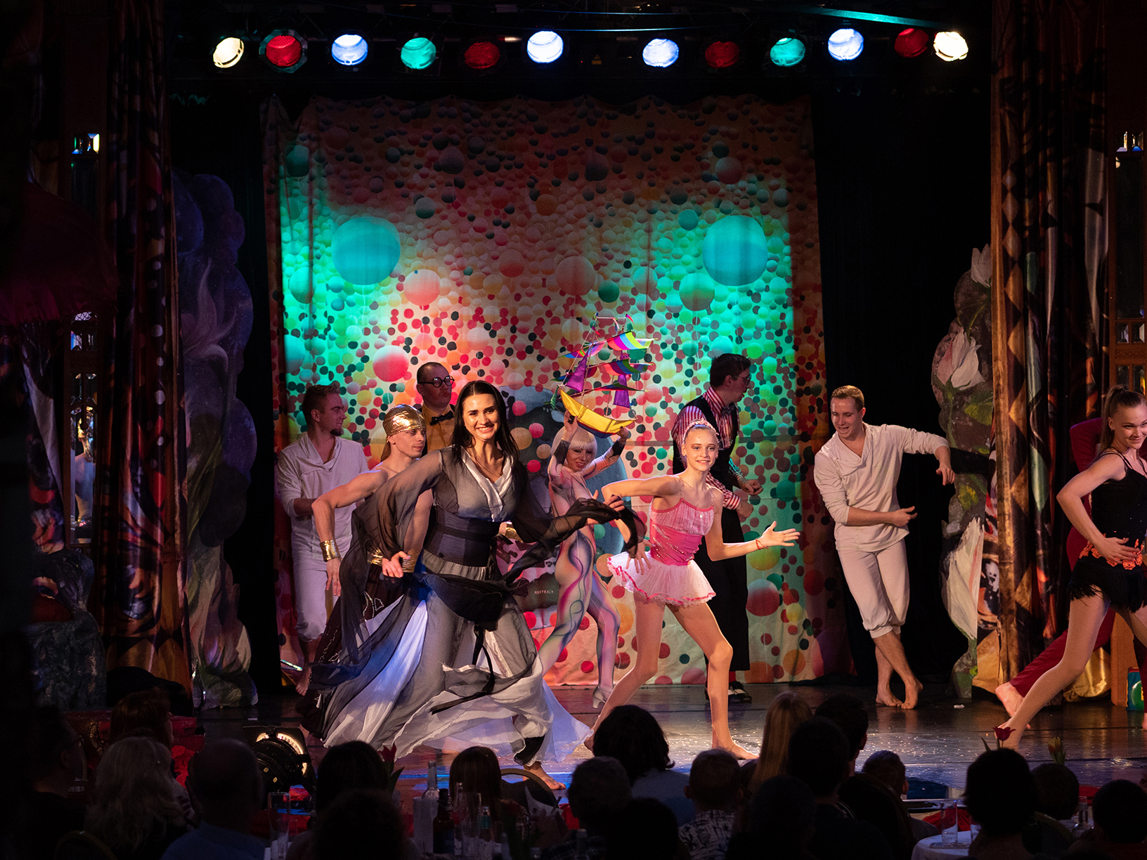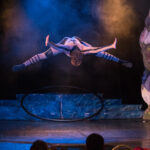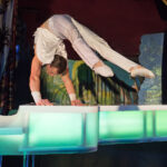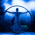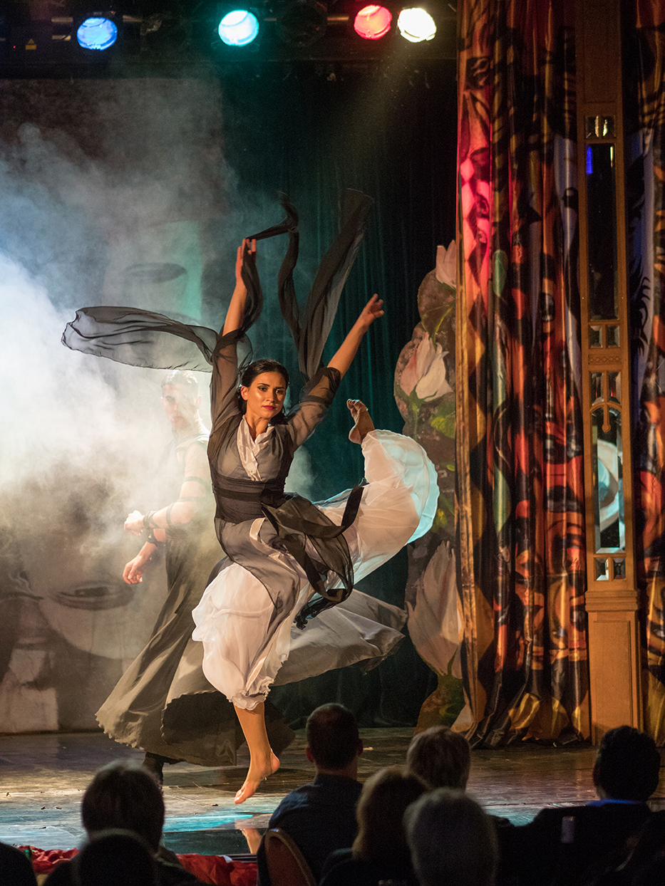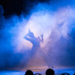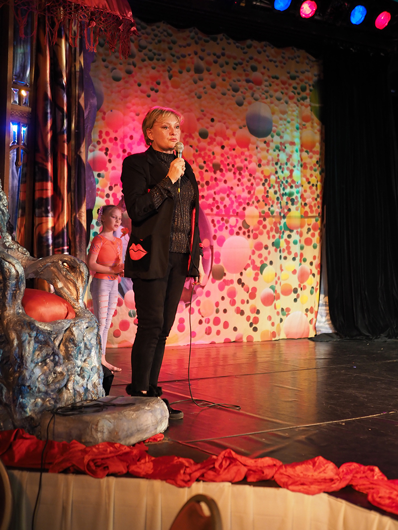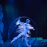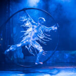 Die Fotos von Traumtheater wurden großformatig, transparent auf die Scheiben des Pavillions der Bäckerei Treiber aufgebracht.