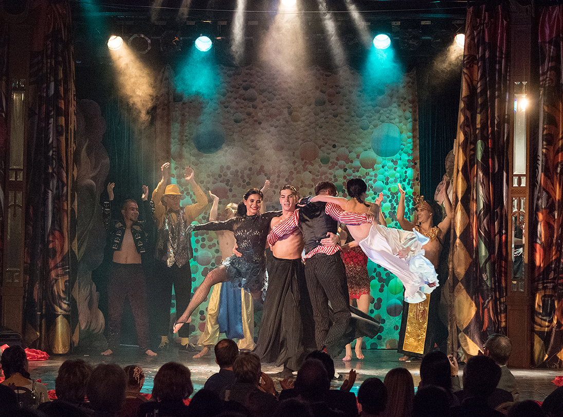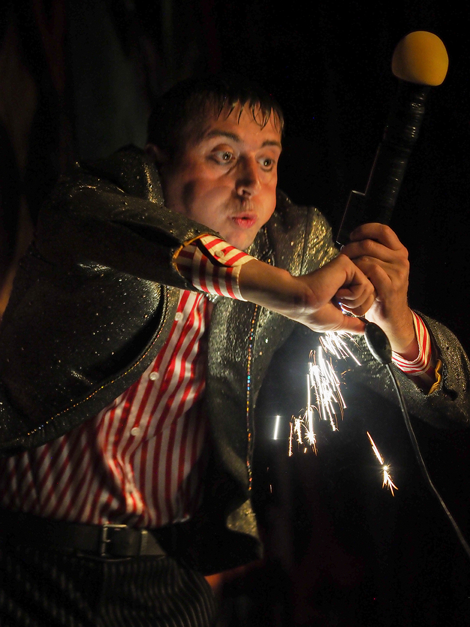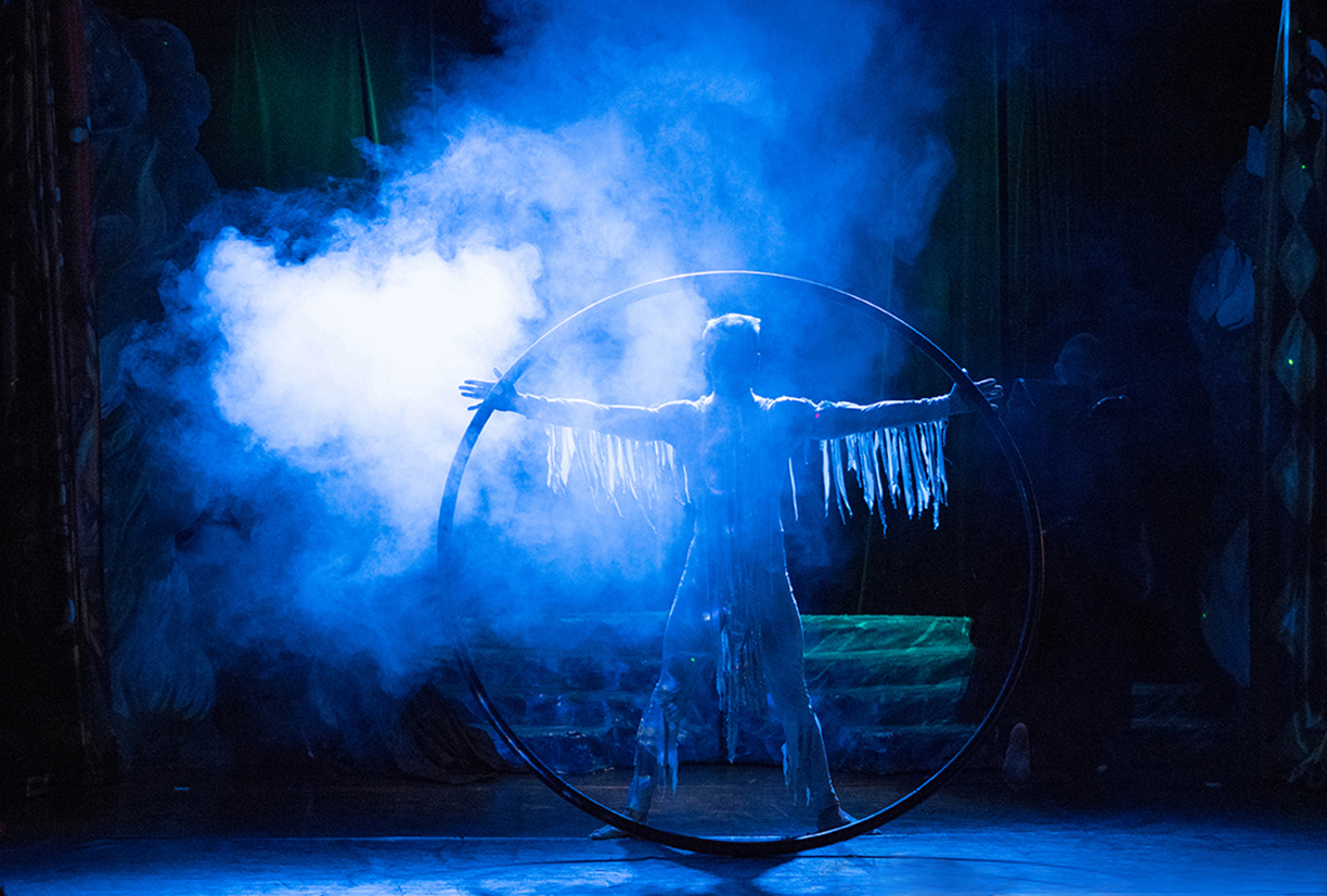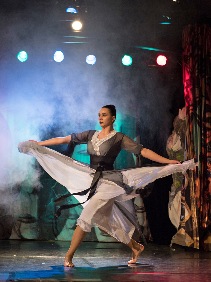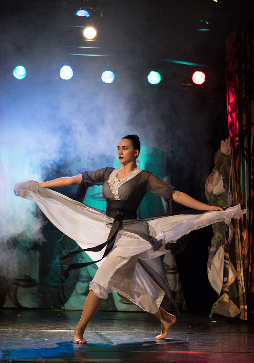 Die Fotos von Traumtheater wurden großformatig, transparent auf die Scheiben des Pavillions der Bäckerei Treiber aufgebracht.