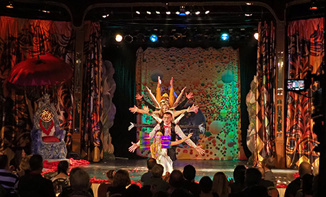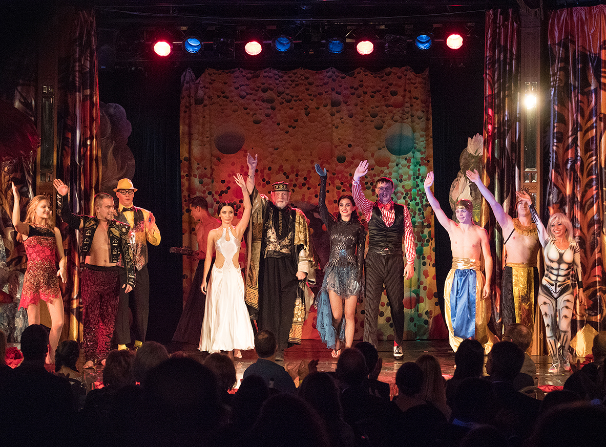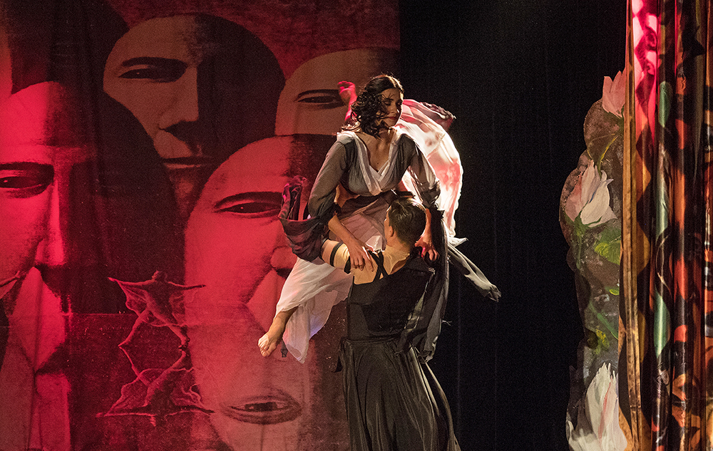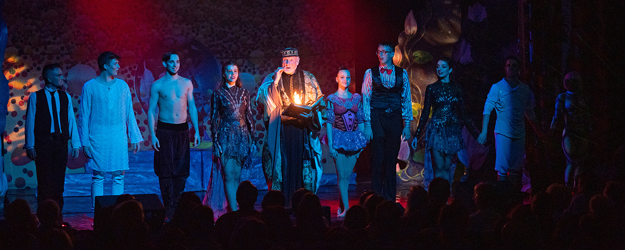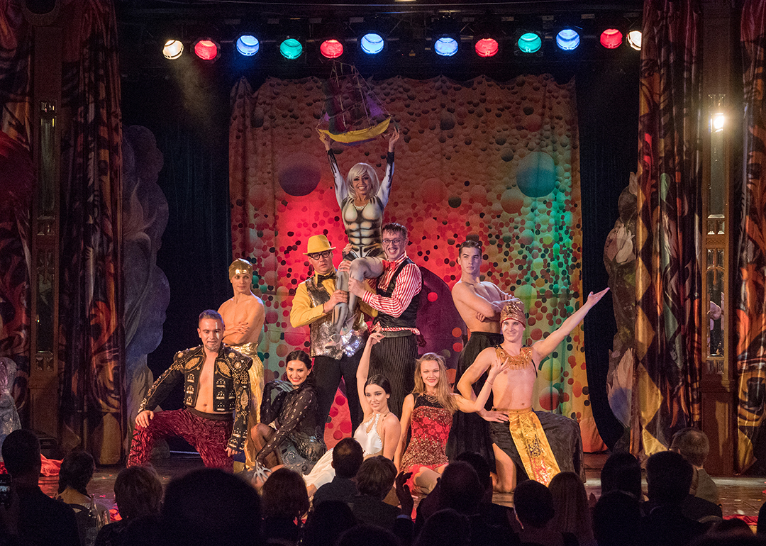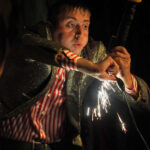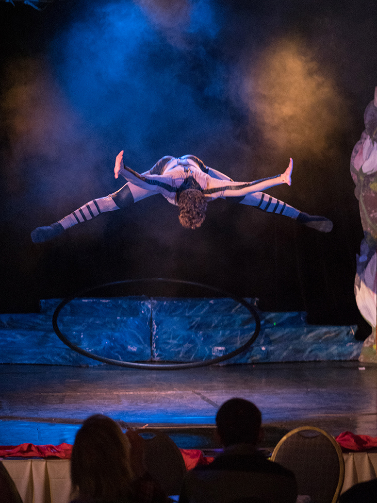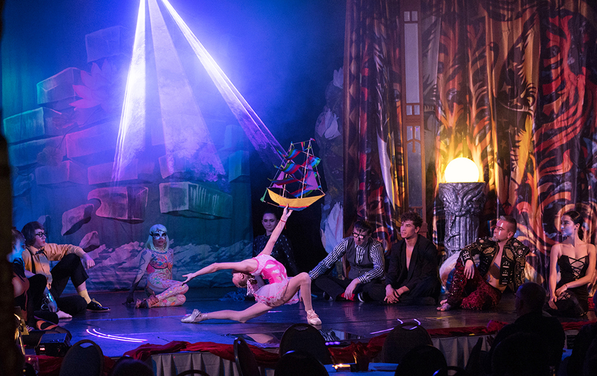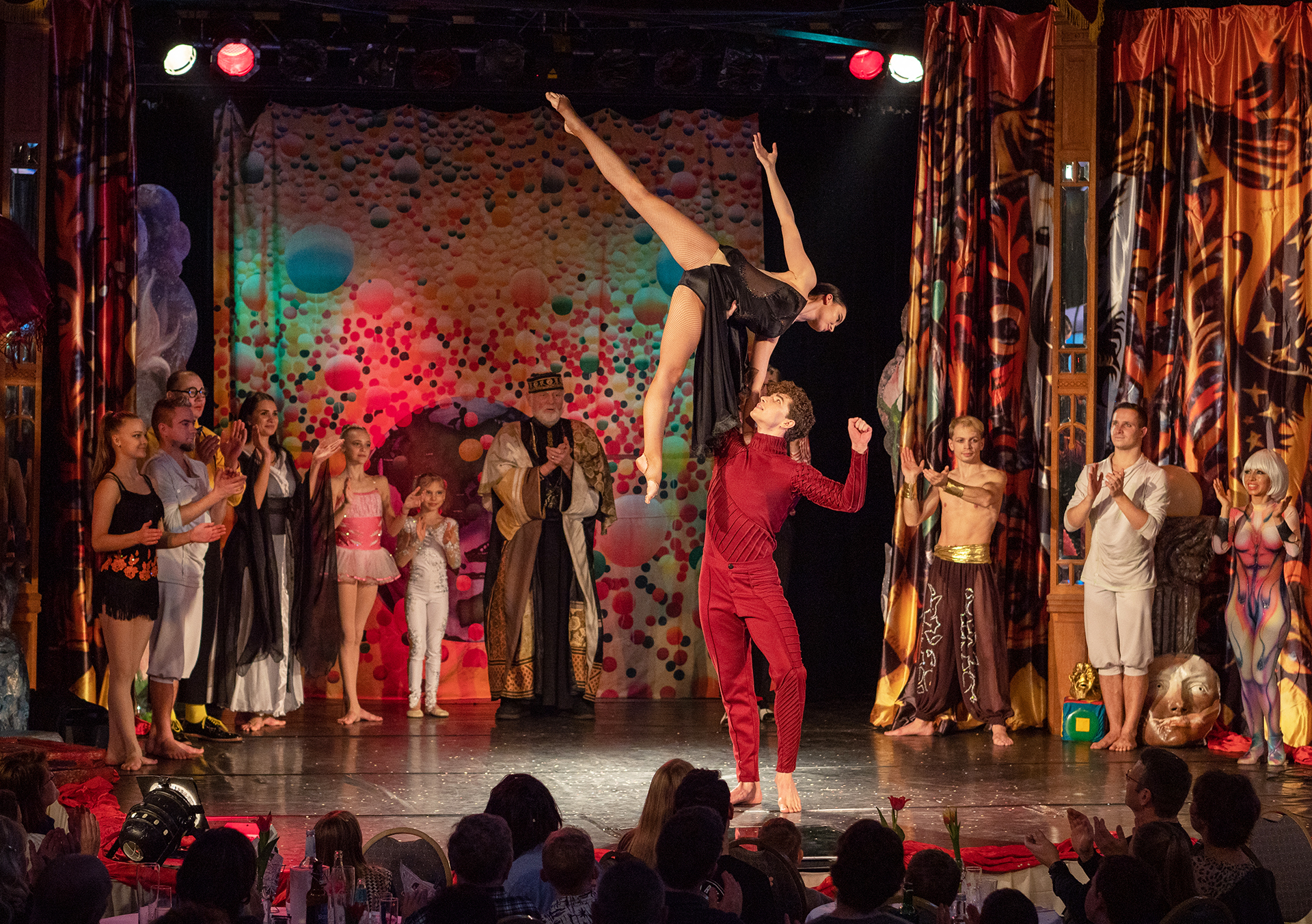 Die Fotos von Traumtheater wurden großformatig, transparent auf die Scheiben des Pavillions der Bäckerei Treiber aufgebracht.