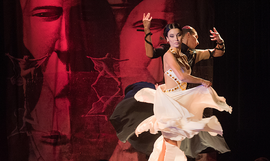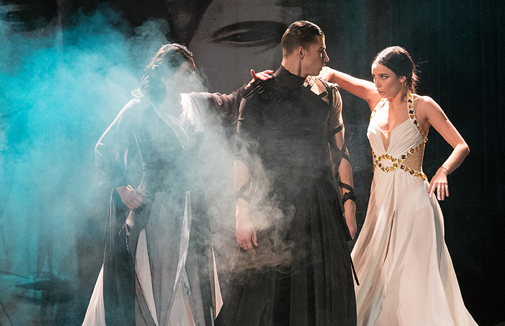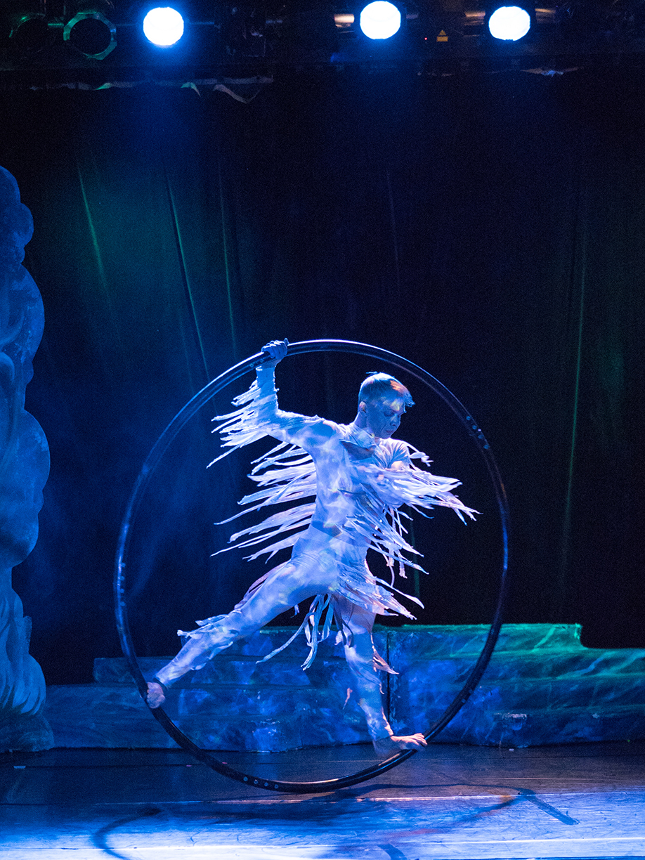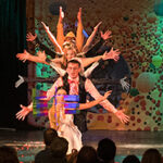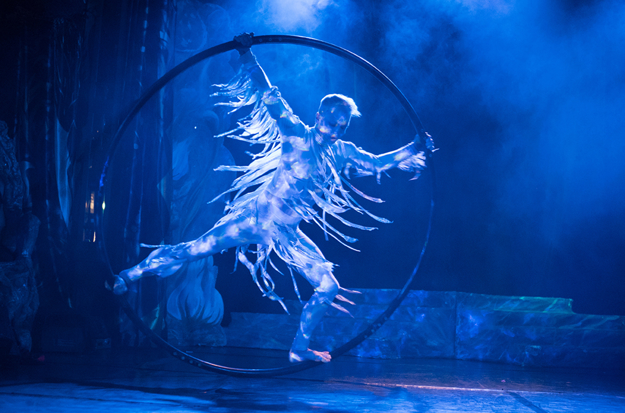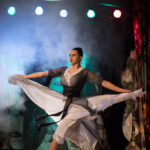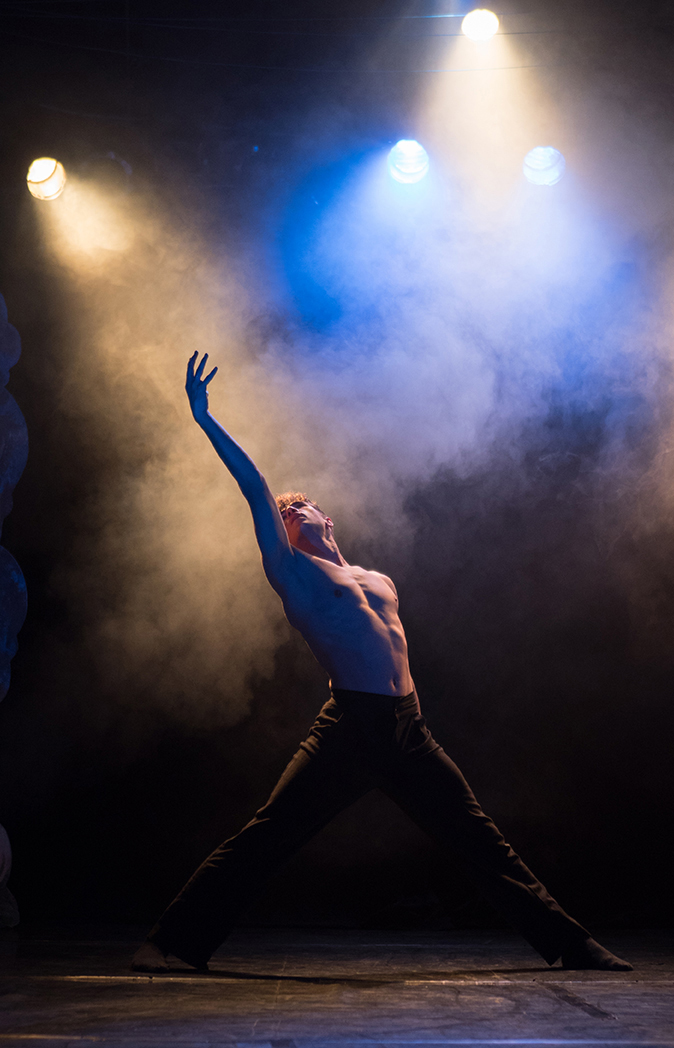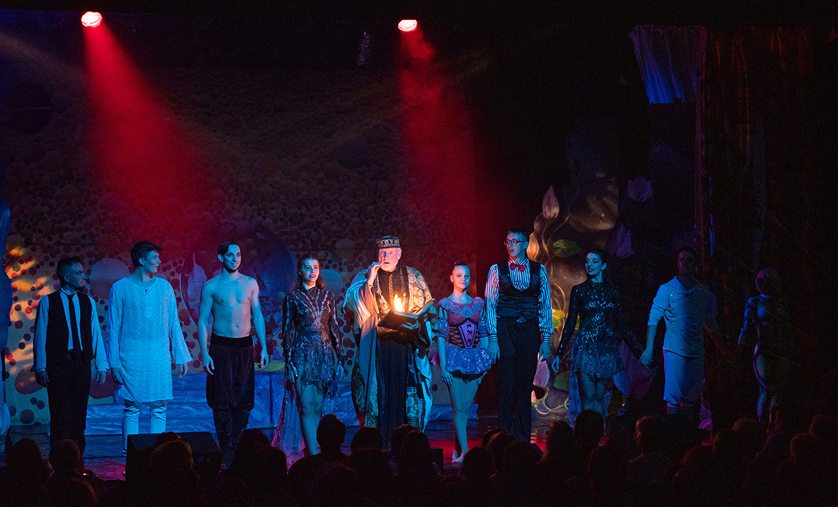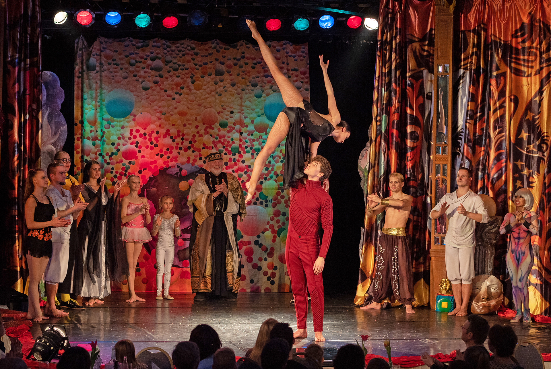 Die Fotos von Traumtheater wurden großformatig, transparent auf die Scheiben des Pavillions der Bäckerei Treiber aufgebracht.